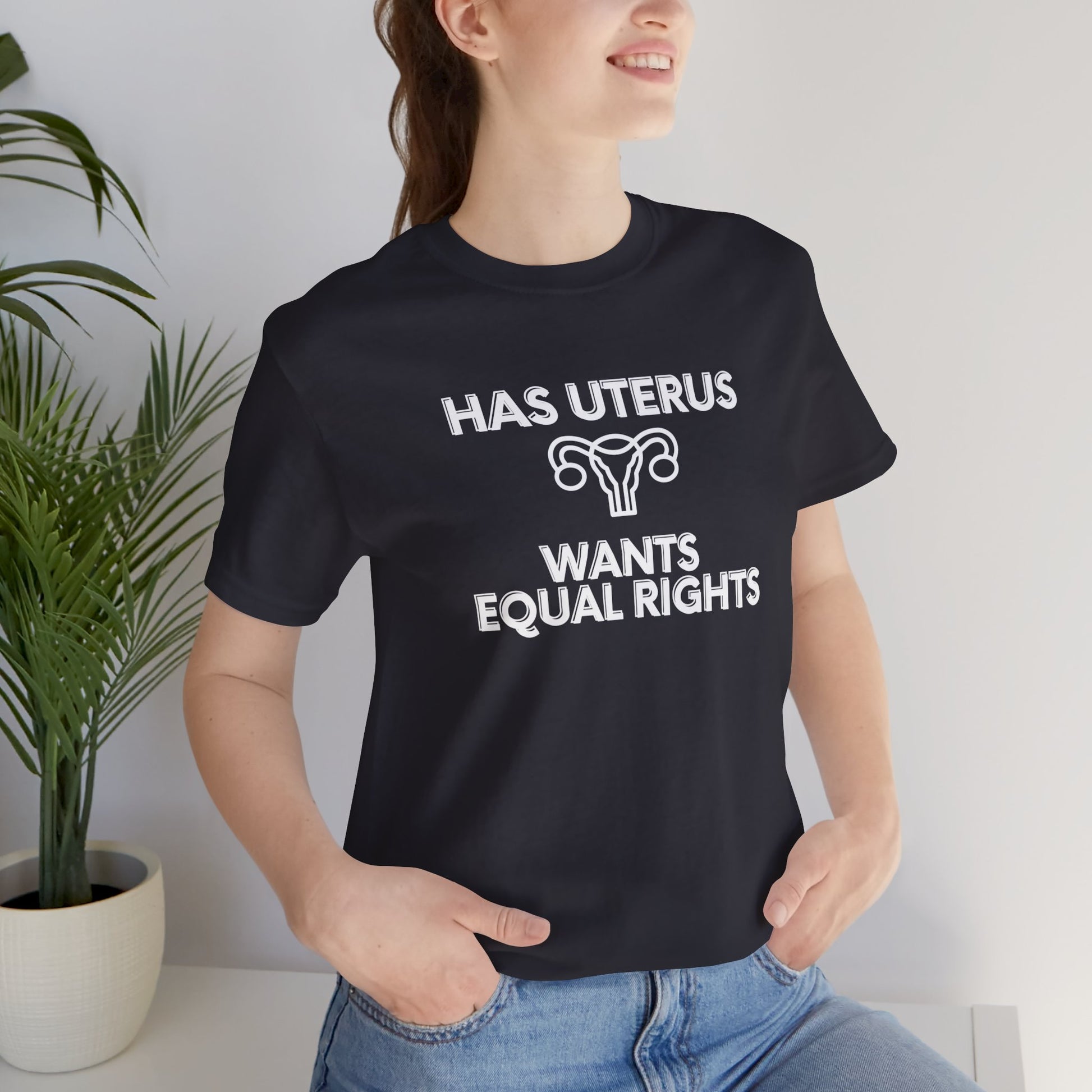 Stand up for equal rights for bodily autonomy. This classic unisex jersey short sleeve tee fits like a well-loved favorite. Soft cotton and quality print make users fall in love with it over and over again. These t-shirts have-ribbed knit collars to bolster shaping. The shoulders are tapered for a better fit over time. Dual side seams hold the garment's shape for longer.